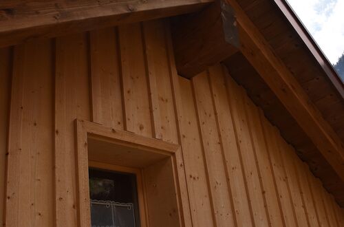 Der ganze Holzteil wurde abgerissen. Bestehen blieb nur die Steinmauer. Auf dieser wurde der neue Holzbau erstellt.