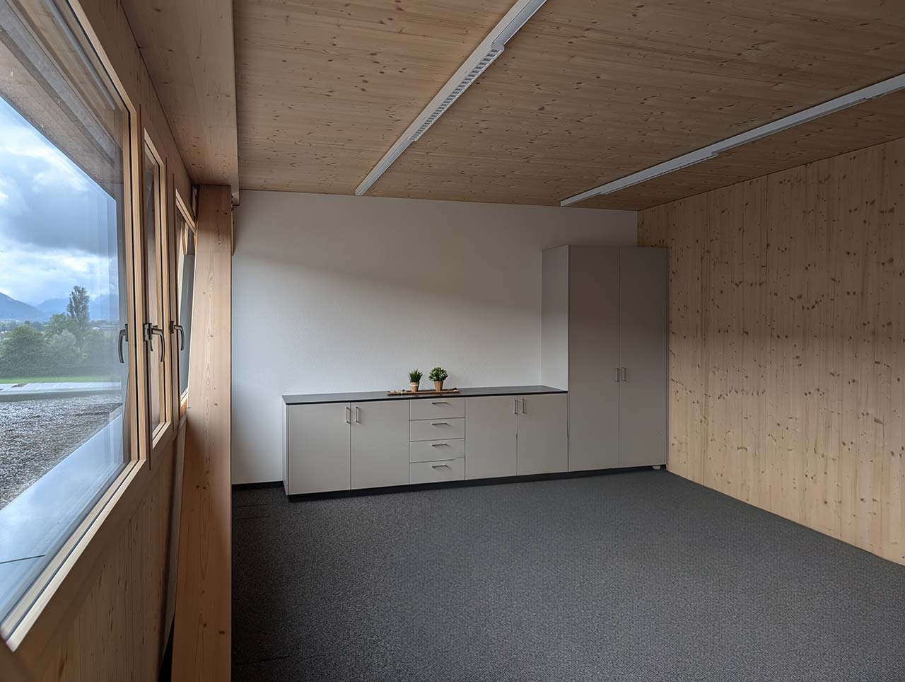 Das moderne und hochwertige Gebäude wurde 2023 erstellt. Die Räume sind klimatisiert. In unserem Bürogebäude sind bereits 5 freundliche Mitarbeitende in 3 Büros tätig. Wir befinden uns an ruhiger Lage in Kobelwies.